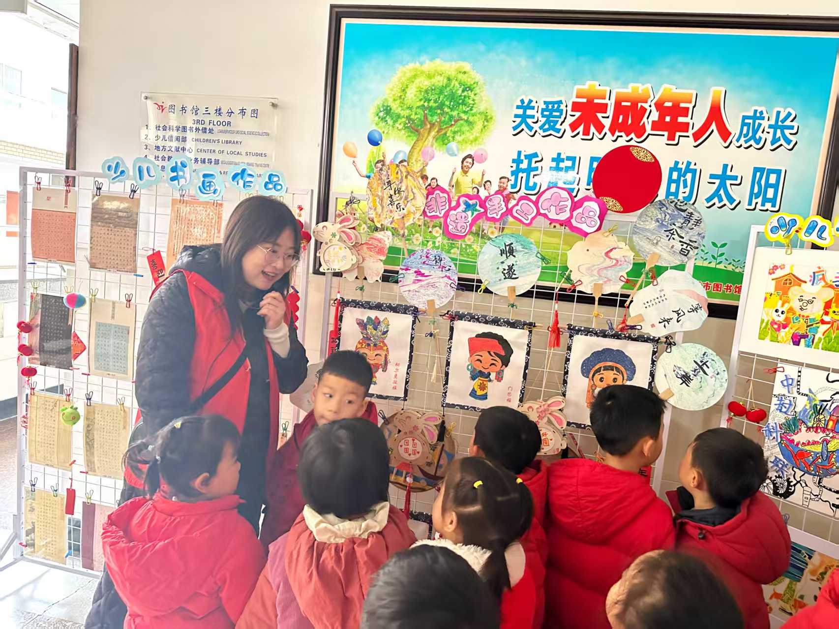 随后,孩子们移步少儿部参观优秀少儿作品展。书法作品的笔墨韵味、绘画作品的童真创意、非遗手工作品的匠心巧思,让孩子们目不暇接,在感受传统文化魅力的同时,也领略到新春佳节的喜庆意趣,审美情趣得到进一步滋养。