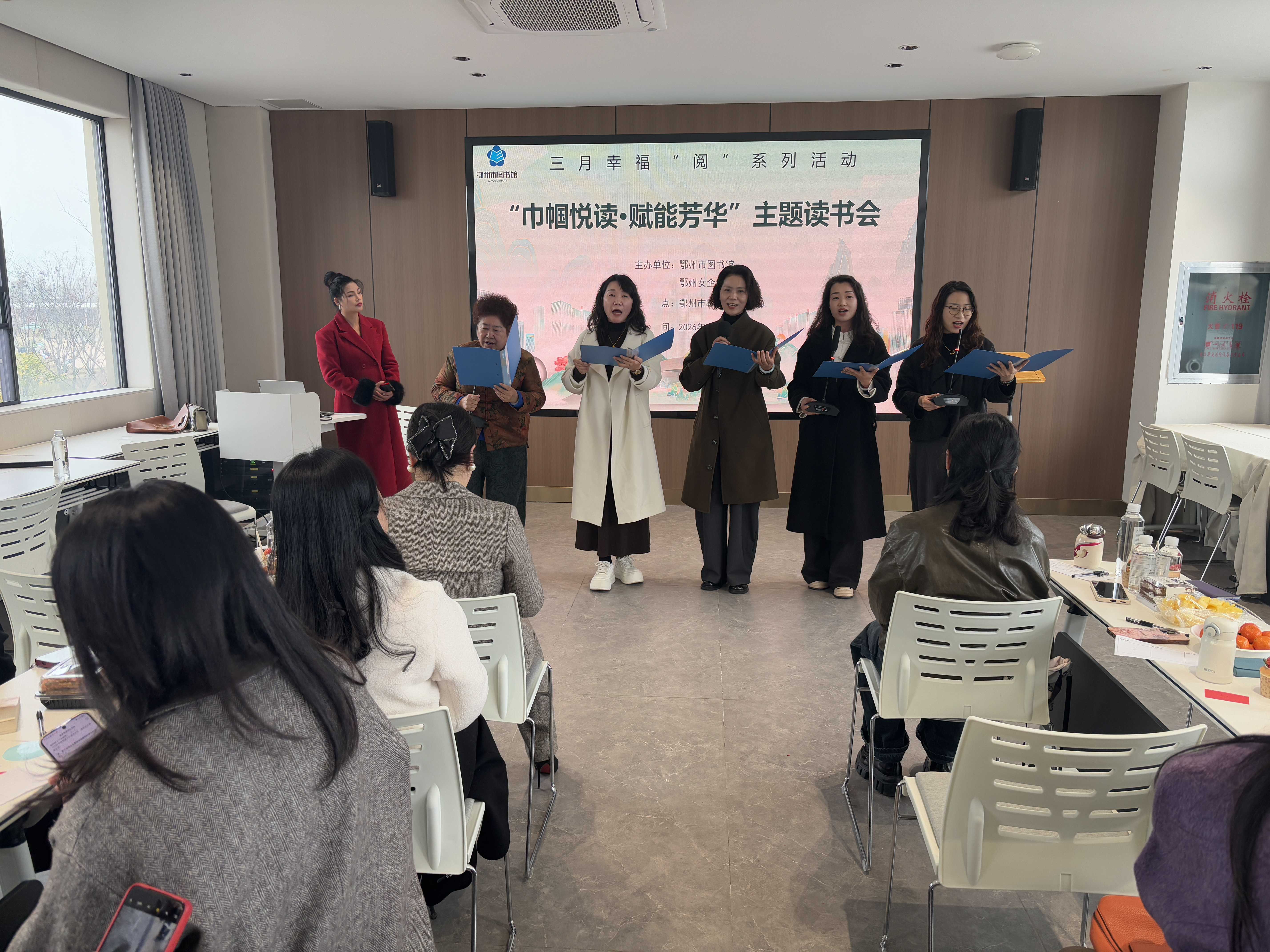 (撰稿人:朱海霞)书香氤氲三月天,巾帼齐聚绽芳华。为庆祝第116个“三八”国际妇女节,3月7日下午,鄂州市图书馆积极响应湖北省图书馆长江读书节“善用科技·马上幸福‘阅’”系列推广活动号召,联合鄂州市临空经济区新时代文明实践站、鄂州市女企业家协会,共同举办“巾帼悦读·赋能芳华”主题读书分享会。女企业家会员齐聚一堂,以书为媒,以声传情,在阅读分享中展现女性风采,汲取前行力量。