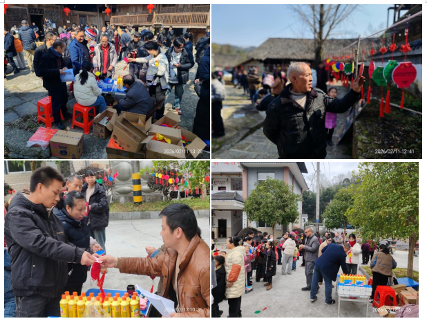 活动现场,最受村民们欢迎的当属猜灯谜、投壶兑奖品环节。一条条喜庆的灯谜悬挂在现场,内容涵盖传统文化、生活常识、新春民俗等多个方面,通俗易懂又充满趣味。猜对灯谜、投壶投中的村民还能领到精心准备的小礼品,现场欢声笑语不断,洋溢着喜庆祥和的节日氛围。