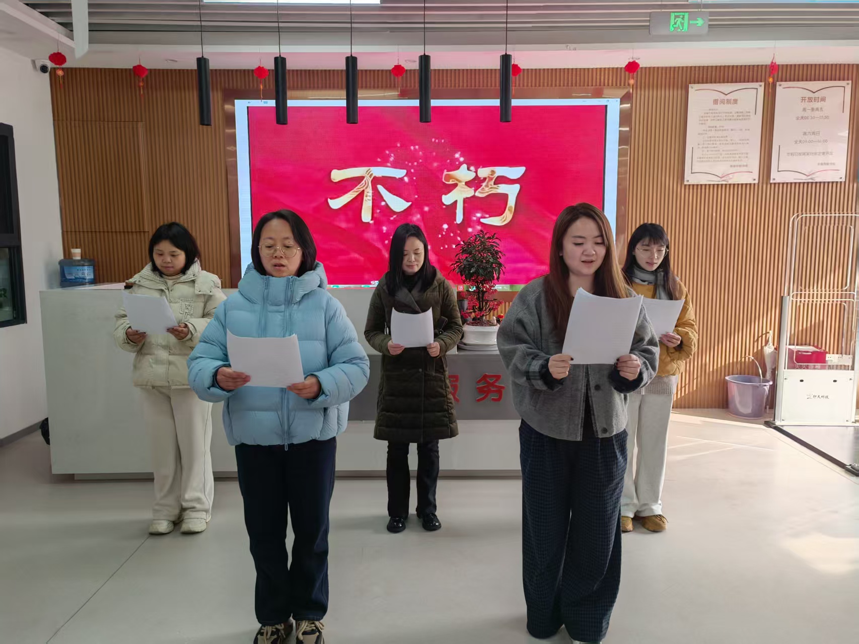 全体女职工齐聚图书馆大厅,深情诵读红色经典《不朽》。铿锵有力的诵读声回荡大厅,字字饱含深情,句句传递力量,大家在经典中感悟信仰之光,汲取奋进动能,传承红色基因。