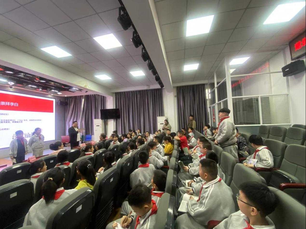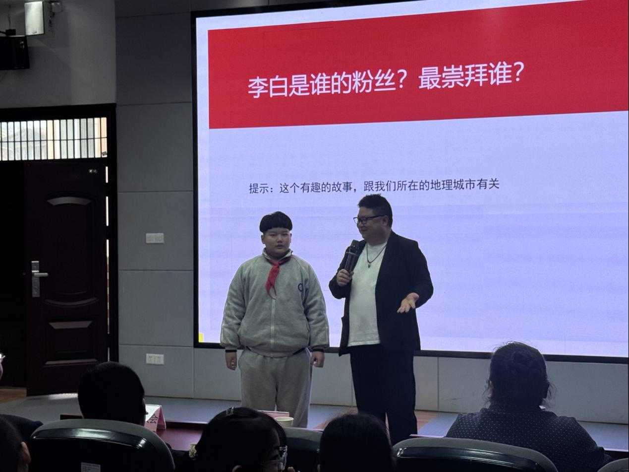 没有枯燥的说教,只有有趣的互动。沈嘉柯老师用孩子们熟悉的“朋友圈”概念,将李白、杜甫、孟浩然、王维等大诗人变成一个个有故事、有羁绊的鲜活人物。“原来诗仙李白也会追星!”“杜甫给李白写了那么多诗,是真爱了!”鲜活有趣的讲述,瞬间击穿了古典文学与当代孩童之间的时空壁垒,现场化作一片欢乐的海洋。