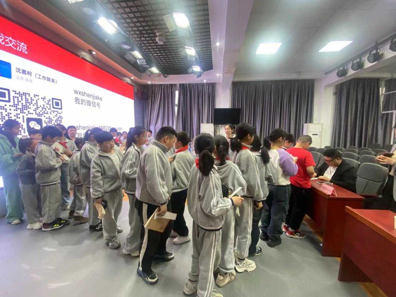 最动人的画面出现在活动尾声。一个胖胖的小男孩攥着拳头,眼神发亮地说:“我以后也要当作家!”另一个穿着黑衣的男孩则立志:“我想成为像沈老师那样的阅读推广大使,把好书讲给更多人听。”阅读的种子,已然在童心中悄然萌发,闪着梦想的光。沈嘉柯老师被孩子们的热情包围,耐心地在每一本递过来的书、每一张书签上留下鼓励的赠言,笔墨温情,浸润心田。